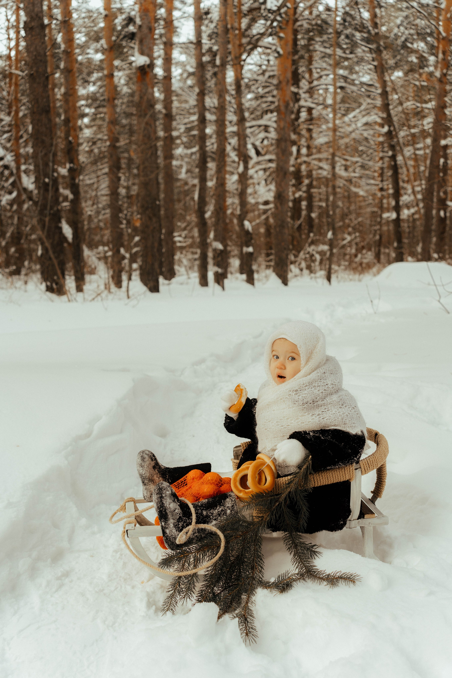 🎁 Реквизит включён в стоимость: — санки — связка баранок — авоська с мандаринами — леденец